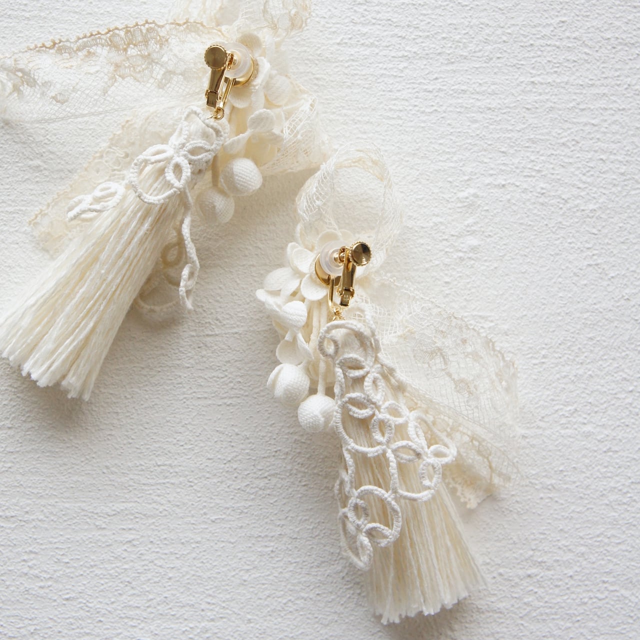 Earrings|Forget-me-not,Lily of the valley & Antique lace( ivory )