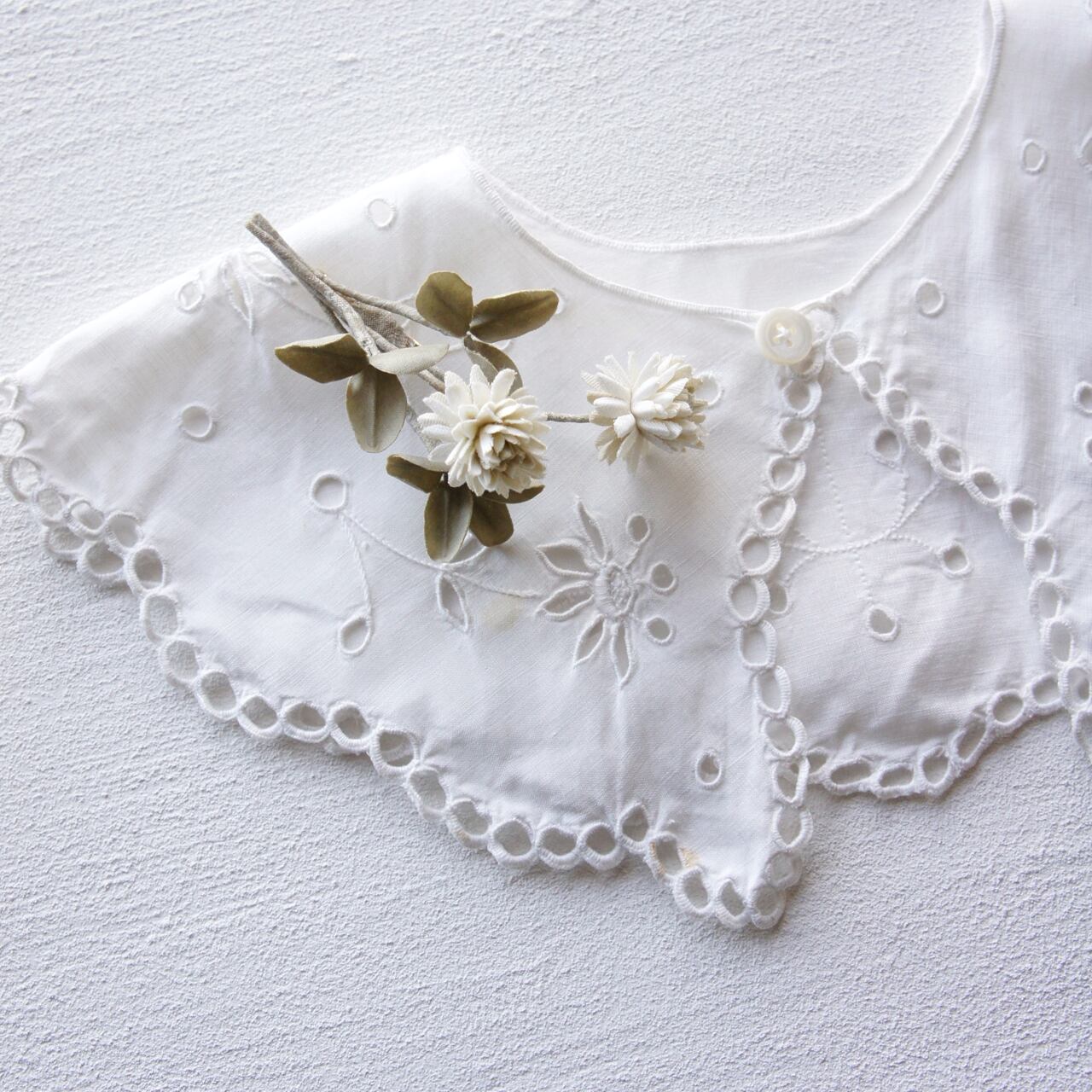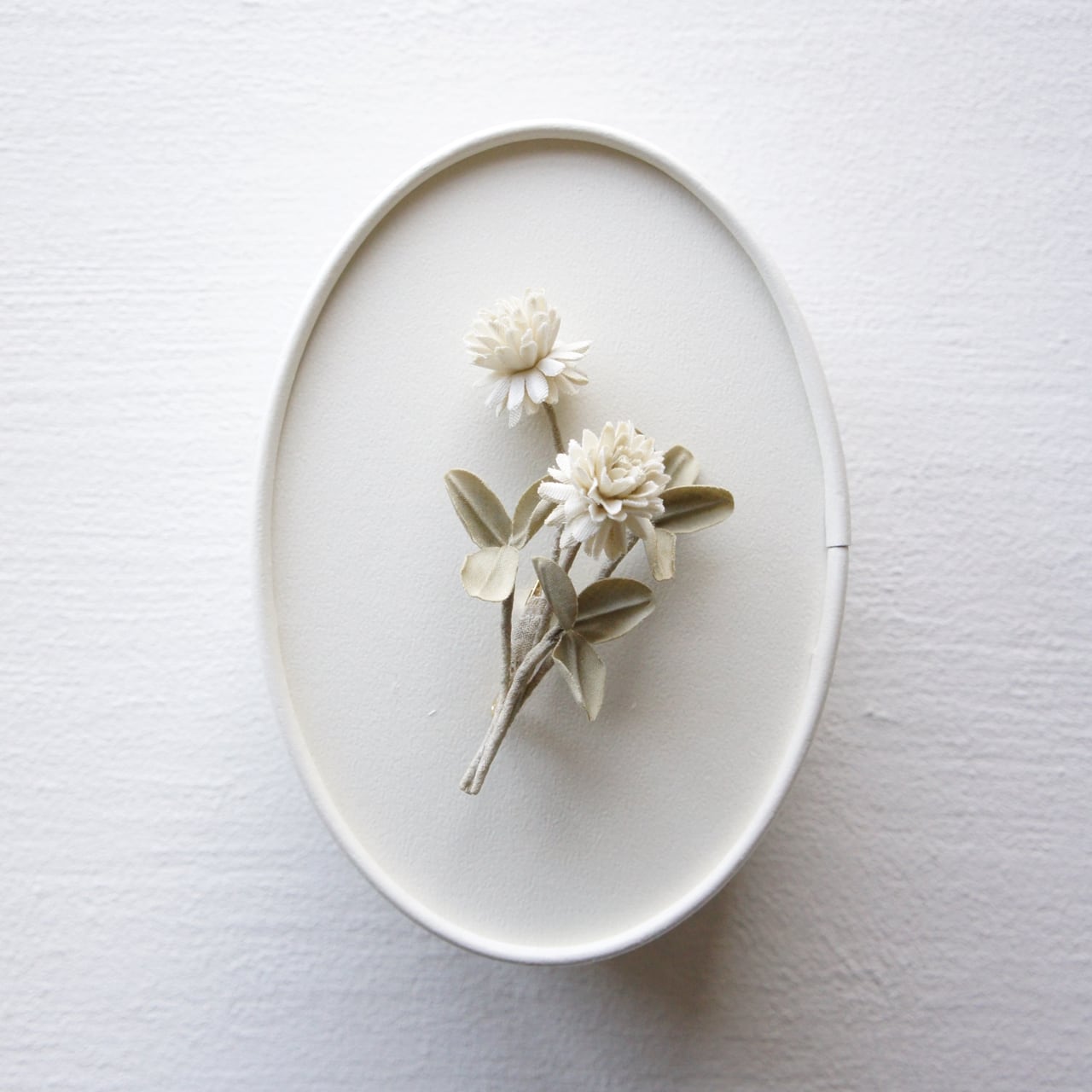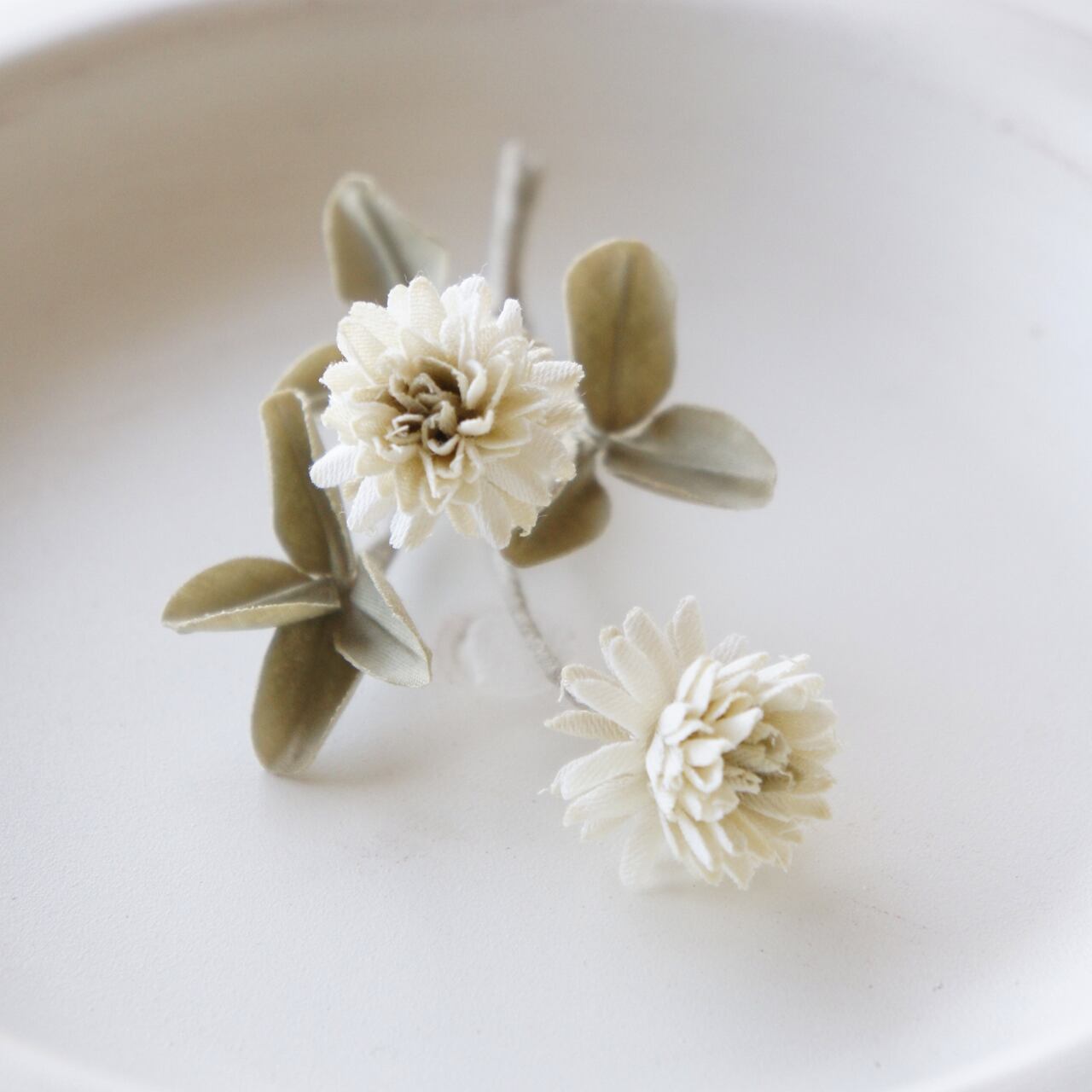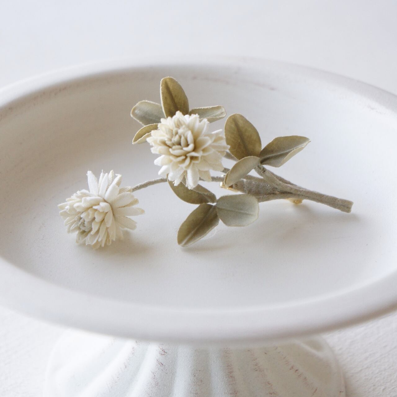 枯れたグリーン色の葉、エクリュ色の花弁