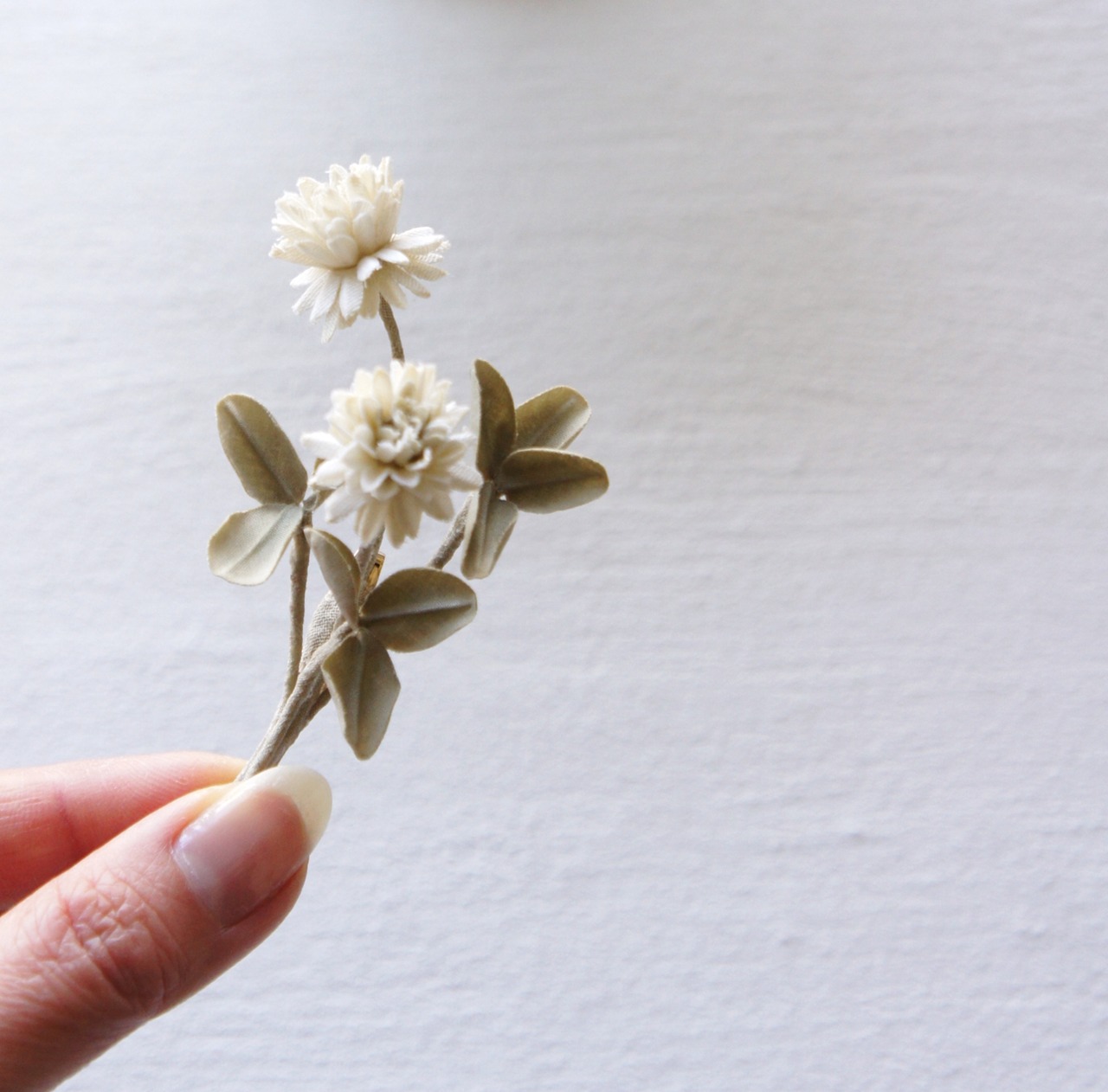 こちらの作品は シロツメクサのブローチです