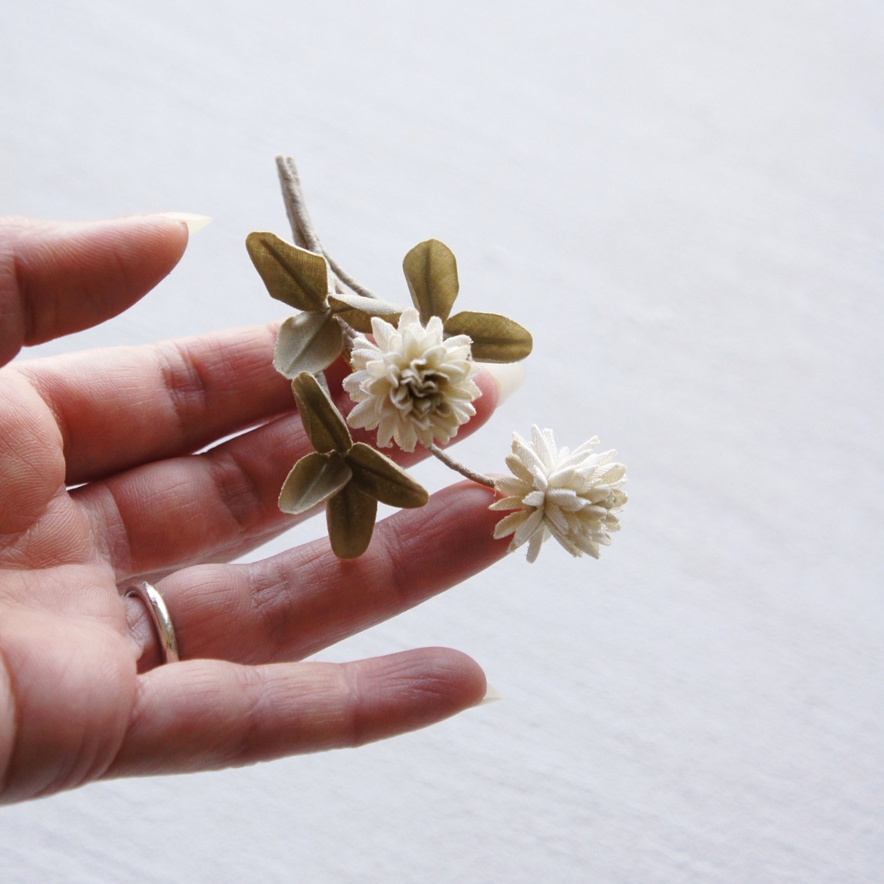 一輪ずつ仕立てた布の草花たちで